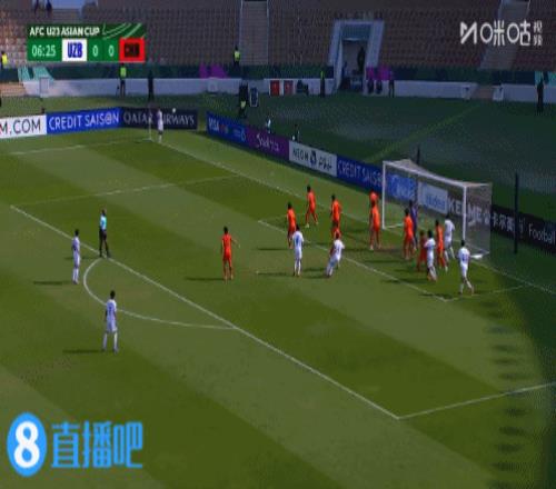 比赛第7分钟,乌兹别克斯坦U23射门变线,击中横梁弹出。乌兹别克斯坦开场后已经3射2正。