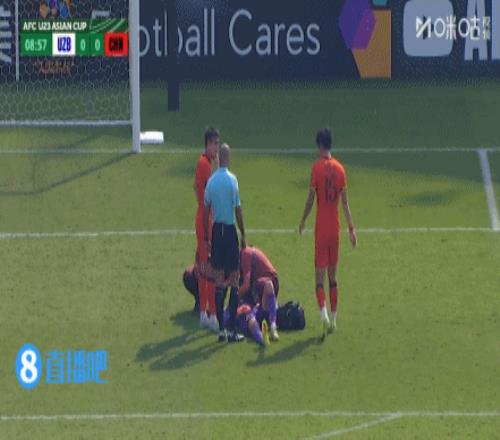 第9分钟,U23国足门将李昊突然躺在地上,镜头给到看台上球迷,充满着惊讶。
